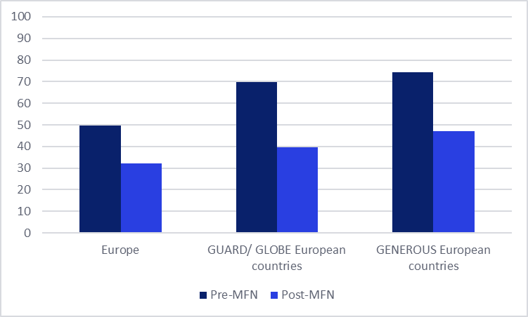 Greater product withdrawals across Europe after MFN introduction in the US